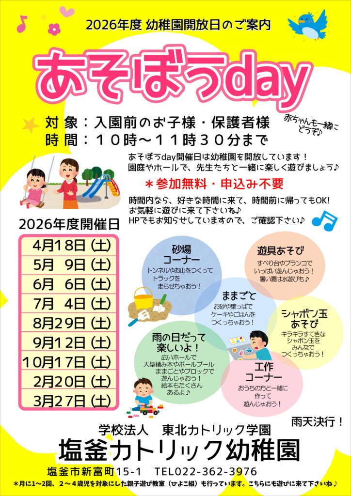 《場所》塩釜カトリック幼稚園の園庭等(雨天時はホール)